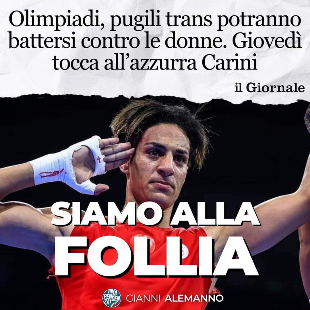 1 agosto. ECCO A COSA PORTA LA DERIVA DELL’IDEOLOGIA GENDER. A Parigi saremo costretti a vedere la nostra pugile Angela Carini essere presa a pugni da un uomo.