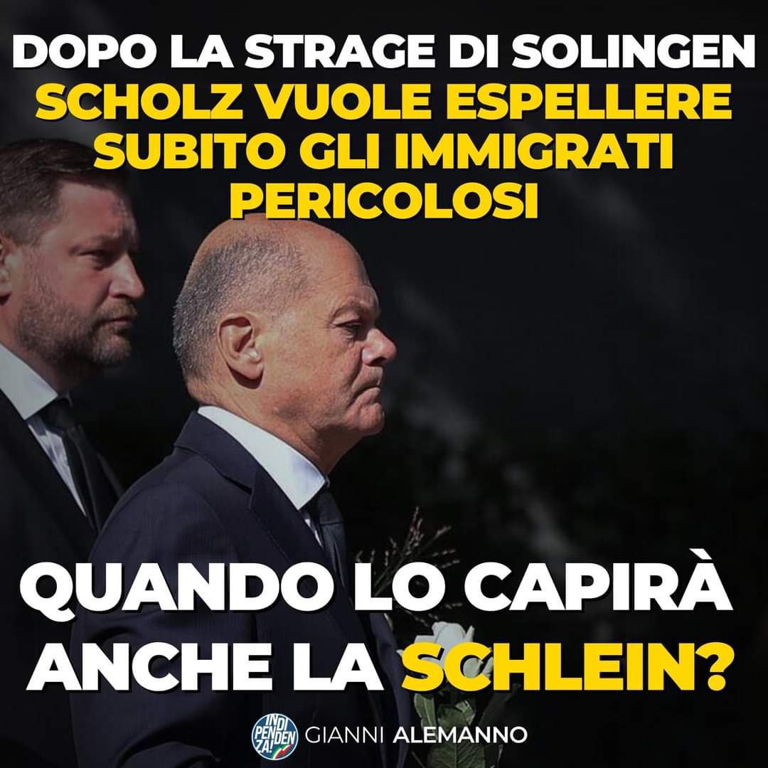 26 agosto. Scholtz vuole espellere subito gli immigrati pericolosi dopo i fatti di Solingen.