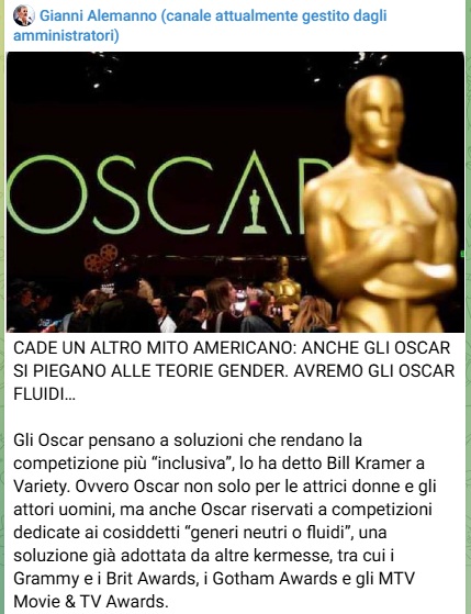 28 giugno. CADE UN ALTRO MITO AMERICANO: ANCHE GLI OSCAR SI PIEGANO ALLE TEORIE GENDER. AVREMO GLI OSCAR FLUIDI…