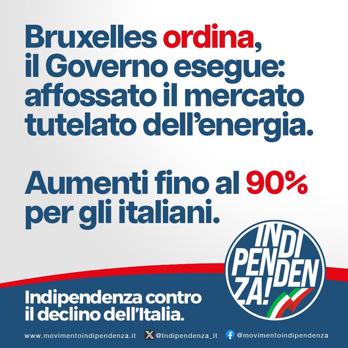 Bruxelles ordina, il governo esegue: affossato il mercato tutelato dell’energia.Aumenti fino al 90% per gli italiani.