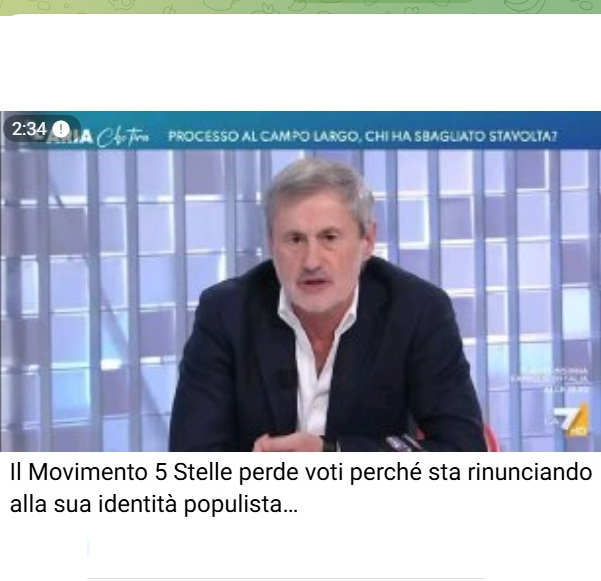 31 ottobre, Alemanno su La7: Il Movimento 5 Stelle perde voti perché sta rinunciando alla sua identità populista.