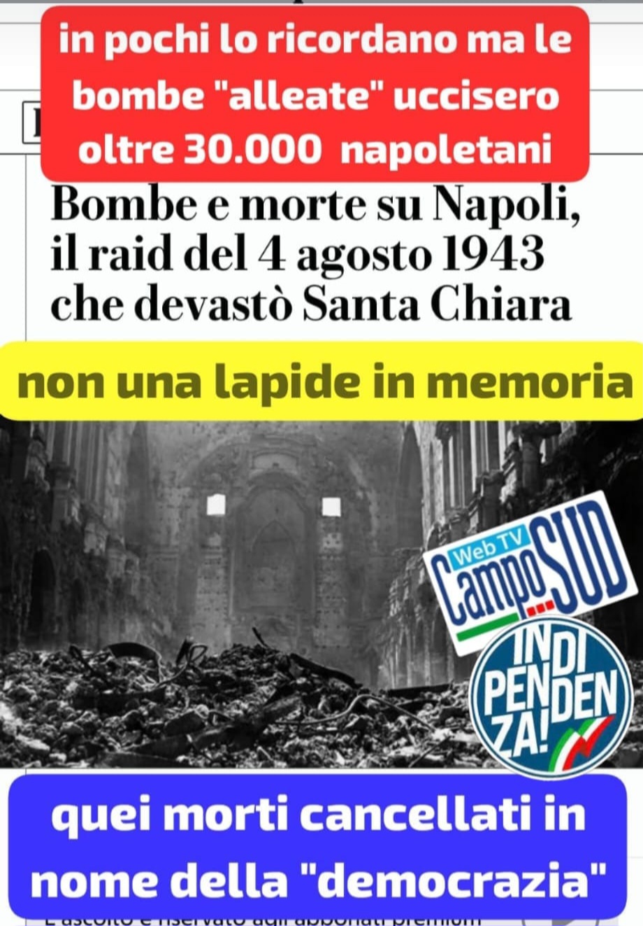 4 agosto. Campo Sud. Il 4 agosto del 1943 le bombe “alleate” uccisero 30.000 napoletani cancellati poi dalla memoria del paese.