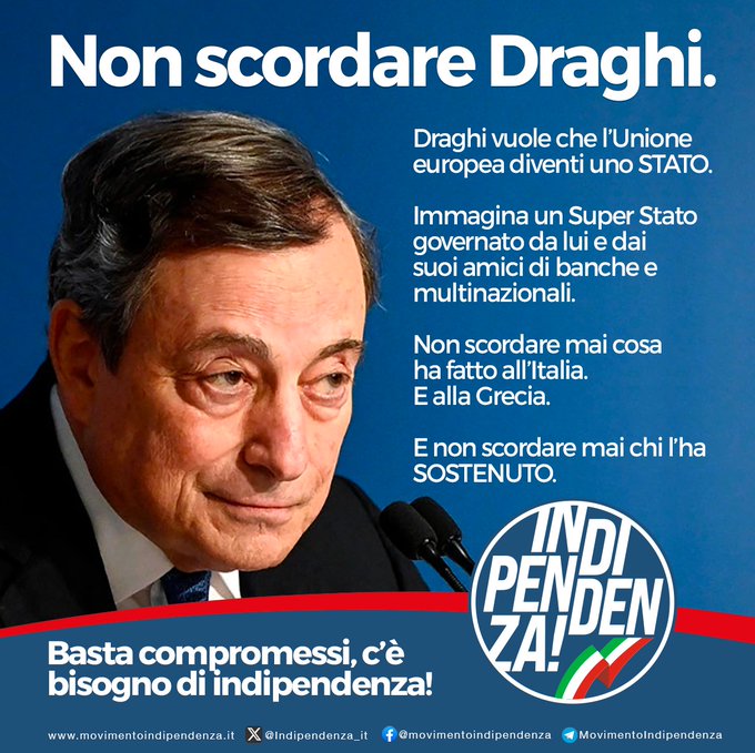 6 dicembre. La ricetta dei tecnocrati: più Europa, esattamente la stessa di Destra e Sinistra. Immagina un Super Stato governato da lui e dai suoi amici delle banche e delle multinazionali.