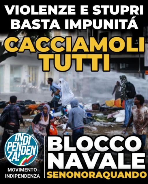 A pochi giorni dallo stupro perpetrato da una banda di nord africani di una ragazzina a Tor Tre Teste, davanti agli occhi del ragazzo immobilizzato, ancora un’altra giovane donna viene violentata a Roma e ancora da tre nord africani. Questo mentre ci si continua a baloccare con i centri in Albania; mentre Chiesa, ONG e sinistra varia continuano a difendere l’immigrazione senza regole. Tra la filosofia di chi esulta perché finalmente l’Europa ci dà ragione (ma non si sa quando) e la vigliaccheria di chi ci vorrebbe inermi davanti all’invasione che viene dal Mediterraneo, c’è la realtà dei nostri quartieri, l’insicurezza per donne, ragazze non più libere di girare per le nostre città, preda di barbari consapevoli della loro sostanziale impunità. È ora che, aspettando Bruxelles e la sua svolta che forse avverrà a giugno, il governo italiano intervenga per difendere i suoi cittadini.Bloccare le frontiere si può e si deve fare (Salvini ministro ci riuscì, aggredito dai magistrati ma portò a casa il risultato). Cacciare senza tanti scrupoli i selvaggi che scorrazzano per la nostra terra deve essere un imperativo.Se non ora quando?