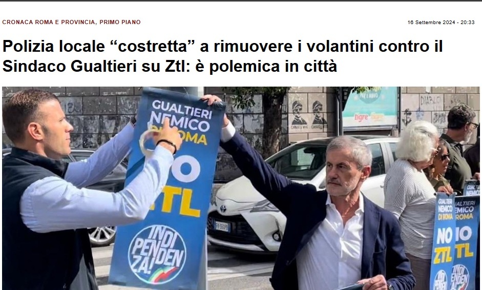 Il Nuovo 7COLLI: municipale “costretta” a rimuovere volantini NoZTL