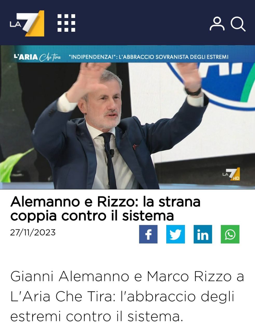 29 novembre. Alemanno e Rizzo a L’Aria che Tira.