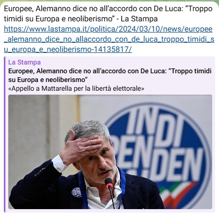 Europee, Alemanno dice no all’accordo con De Luca: “Troppo timidi su Europa e neoliberismo” – La Stampa