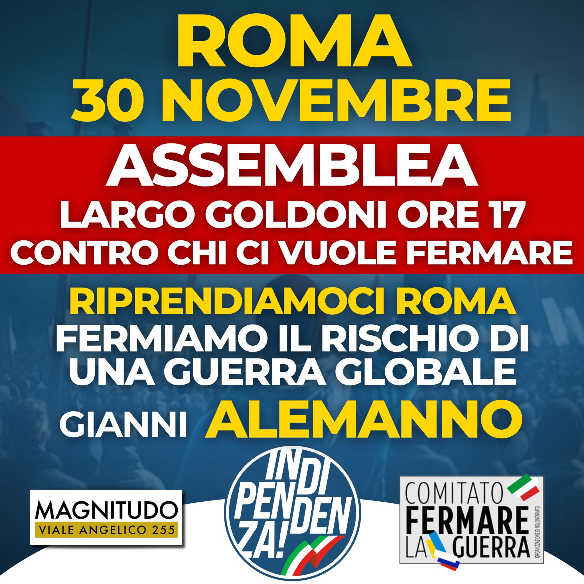 L’assemblea per il primo anno del partito, dopo che ci è stata pretestuosamente negata la sala già fissata, viene convocata come manifestazione a largo Goldoni, Roma.