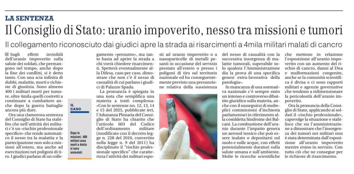Sentenza del Consiglio di Stato sull’uranio impoverito